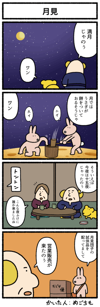 【4コマ漫画】月見 2025 9/30 4コマ漫画 2025年10月1日 4コマ漫画 【4コマ漫画】どんぐりころころ 関連記事 【4コマ漫画】どんぐりころころ 2025年9月1日 【4コマ漫画】花火 2025年8月1日 【4コマ漫画】うちわ 2025年7月4日 【4コマ漫画】つゆ 2025年6月1日 【4コマ漫画】鯉のぼり 2025年5月1日 【4コマ漫画】心は若く 2025年4月1日 【4コマ漫画】ひな祭り 2025年3月1日 【4コマ漫画】節分 2025年2月1日