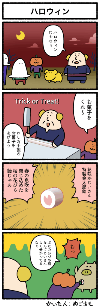 【4コマ漫画】ハロウィン 2025 11/01 4コマ漫画 2025年11月1日 4コマ漫画 関連記事 【4コマ漫画】月見 【4コマ漫画】どんぐりころころ 【4コマ漫画】花火 【4コマ漫画】うちわ 【4コマ漫画】つゆ 【4コマ漫画】鯉のぼり 【4コマ漫画】心は若く 【4コマ漫画】ひな祭り